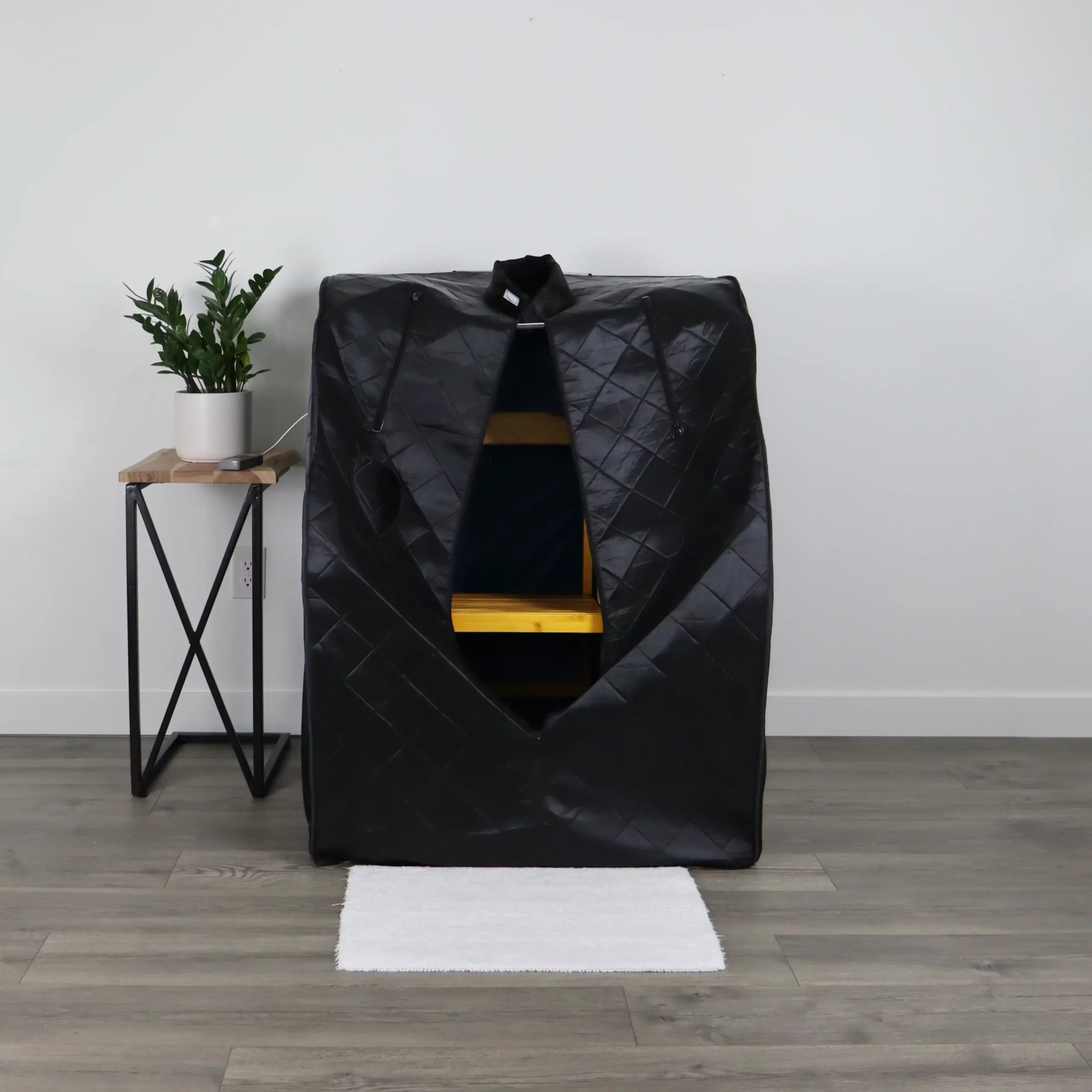 The Foldaway Sauna can be easily set up and taken down, making it great for leaving out or storing in a closet or under a bed.
